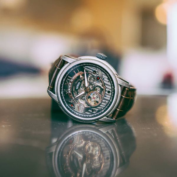 A watch that commands attention and respect, the El Toro, with its vintage design, strong wrist presence and, as is with all Aries Gold watches, with no detail is left unattended to. From the jeweled chatons, heat blued screws and skeletonized counterweight on the seconds hand, the El Toro is the perfect blend of style and substance.