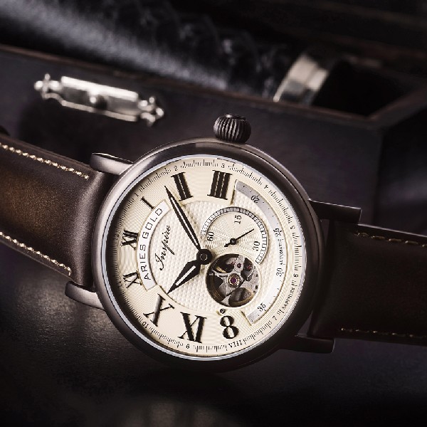 Each Aries Gold Watch comes with its very Own Wooden and Velvet Presentation Box.
