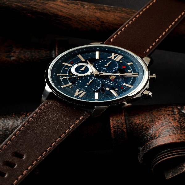 Owning a complex Swiss Made moon-designed (day/ night) multi-function watch has always been a dream for many watch lovers but few has the budget to actually invest in one. The Belfast Moon 7013 is a unique masterpiece created by the Aries Gold team to meet the needs of many watch lovers by creating an affordable day/ night multi-function watch with a skeletal moon design. The much-loved classic looking Belfast is remade into another classic watch with a standard brushed casing but this time with a skeletal dial that showcases the moon disc on its unique Japanese Seiko chronograph movement. The beautiful watch is topped with a very thick and high-quality leather strap to endure the rigors of daily wear.
