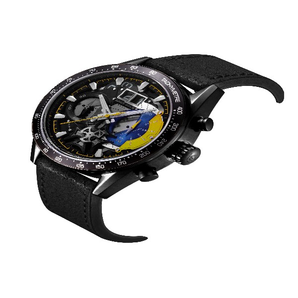 Equipped with a Miyota mecha-quartz chronograph movement, disc hands and a panorama date display, the Jolter has the mechanical prowess to match its aggressive nature.