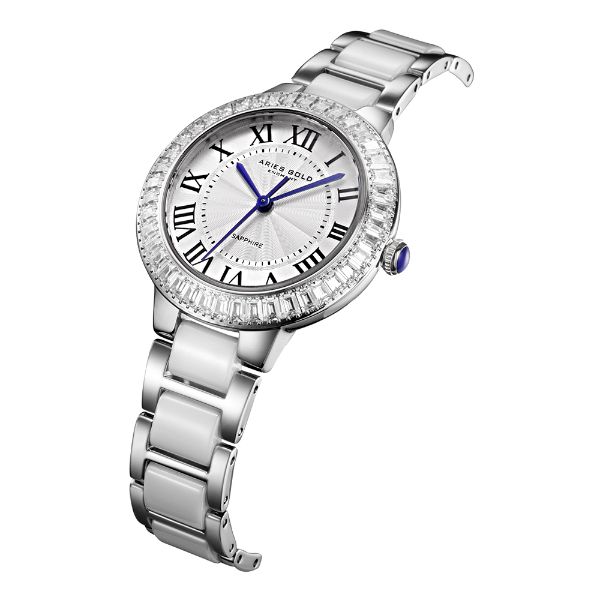 The brightest stars are those who shine for the benefit of others. And so it proves with the Capella, a simply lustrous 32mm ladies timepiece. Named after the brightest star in the constellation Auriga, specially cut square stones line the bezel to provide extra sparkle. More than just lustre, these stones have also been set to prevent fall-off, complementing the ceramic bracelet with interweaved stainless-steel links, taking durability to a higher plane. Sapphire glass and Roman numeral markers complete the Capella, marking it out as a star in its own right.