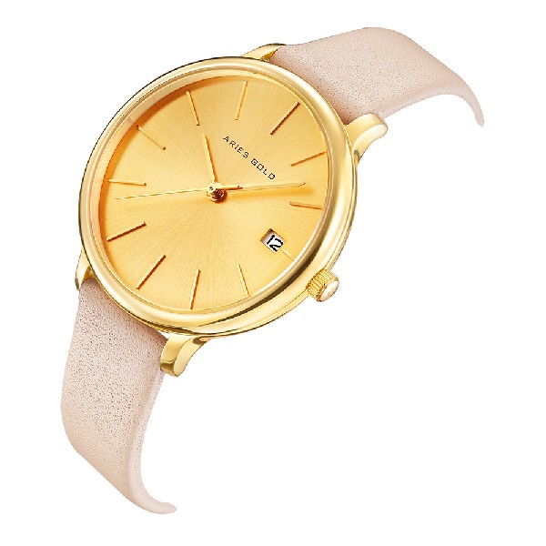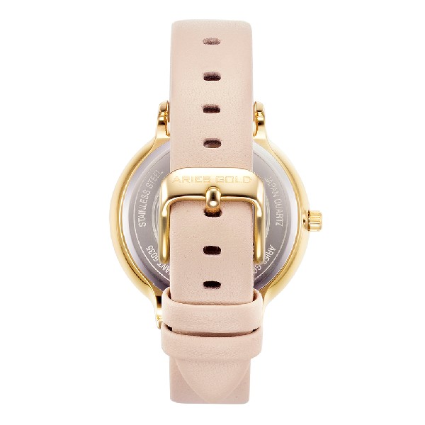 ARIES GOLD ENCHANT FLEUR GOLD STAINLESS STEEL L 5035 G-G LEATHER STRAP WOMEN'S WATCH