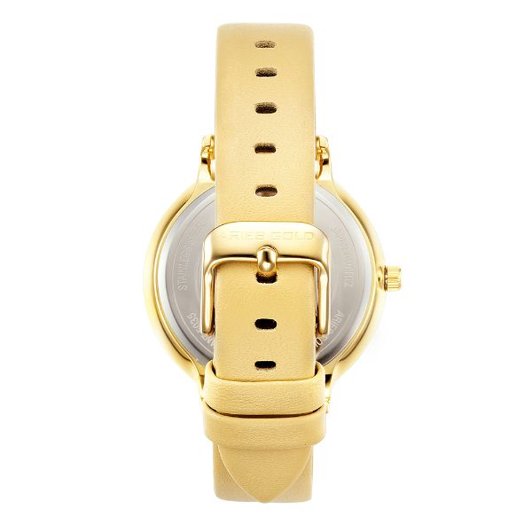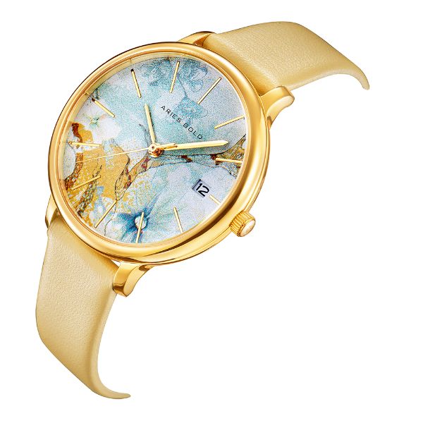 ARIES GOLD ENCHANT FLEUR GOLD STAINLESS STEEL L 5035 G-ORFL LEATHER STRAP WOMEN'S WATCH