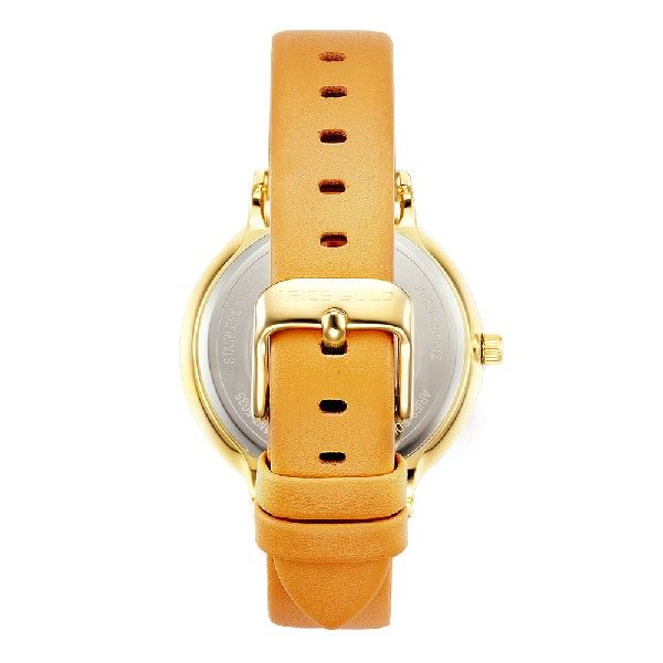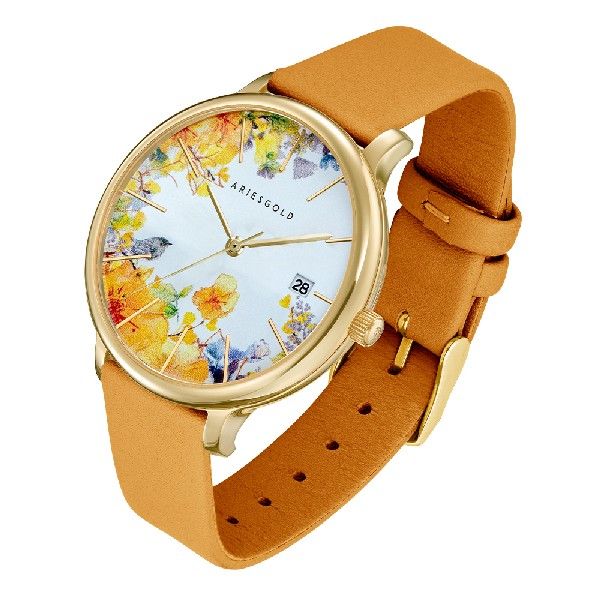ARIES GOLD ENCHANT FLEUR GOLD STAINLESS STEEL L 5035A G-YFL MUSTARD YELLOW LEATHER STRAP WOMEN'S WATCH