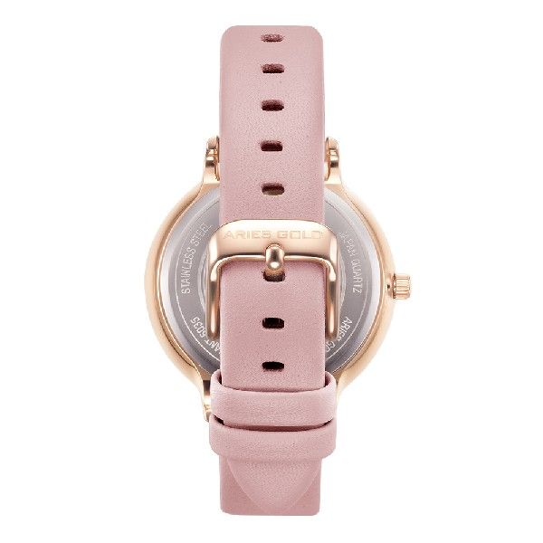 ARIES GOLD ENCHANT FLEUR ROSE GOLD STAINLESS STEEL L 5035A RG-PIFL PINK LEATHER STRAP WOMEN'S WATCH