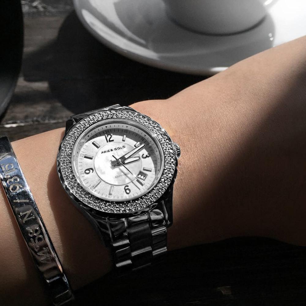 Going from plain to plain gorgeous requires concerted effort, even a lifetime of devotion. And with a single-tone colour scheme mirroring the single-minded pursuit of aesthetic perfection, the full stainless-steel Venus artfully exemplifies this feminine philosophy. A Mother of Pearl dial core sits nicely against the glorious bezel set with two rings of crystals – encircling a resilient sapphire glass crystal. Internally, Japanese three-hand with date movement keeps the Venus ticking, rendering it a divine blend of poise and precision.