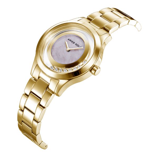 A design that celebrates feminine charm, with a minimalist plain marble dial and 2 hands, floating in a case with 5 rotatable crystals lining the periphery. The Verona is an elegant statement of sophistication and confidence.