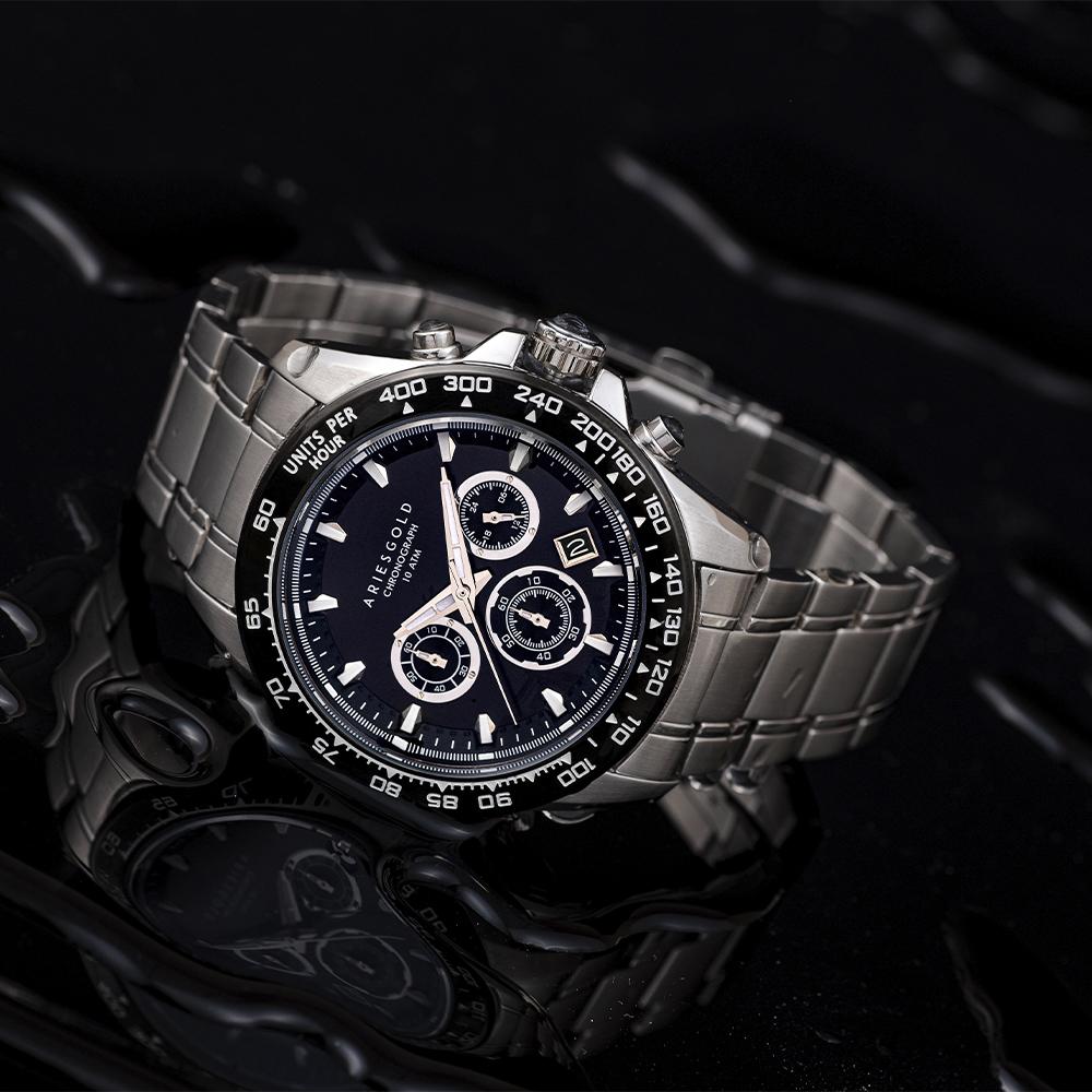 For the motoring enthusiast, few tracks are as coveted as the legendary Monza circuit. To commemorate this incredible landmark of motorsport, the Aries Gold Monza was born. Sporting a sturdy stainless-steel bracelet, a chronograph and a bezel lined tachymeter for on-the-go speed measurements. Aggressive and decidedly masculine in its design, the Monza is not for the faint of heart. A bold metallic dial and a high accuracy quartz caliber sits within the stout 43.5mm polished case. For the motoring enthusiast or the aspiring collector, few things come close to the Monza.