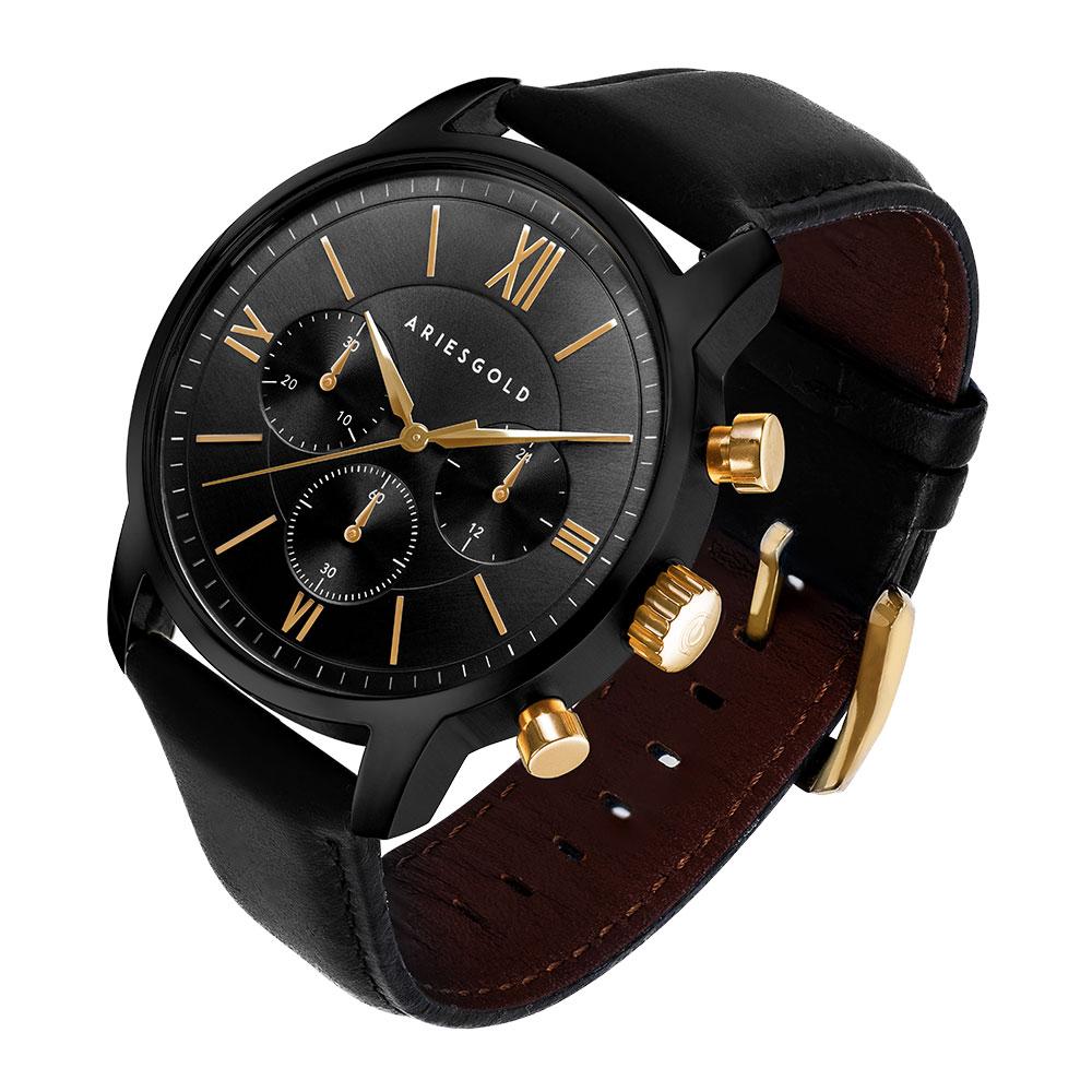 ARIES GOLD URBAN ETERNAL BLACK STAINLESS STEEL G 1027 BKG-BKG BLACK LEATHER STRAP MEN'S WATCH