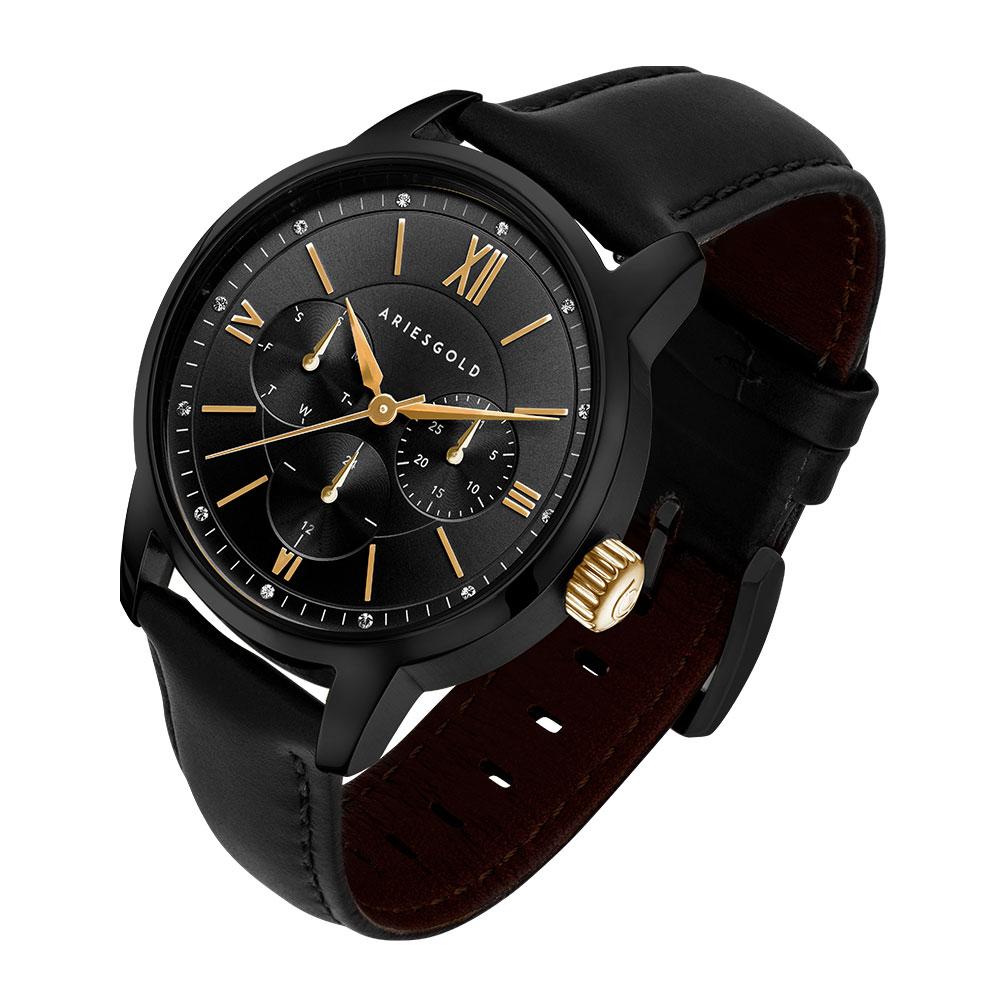 ARIES GOLD URBAN ETERNAL BLACK STAINLESS STEEL L 1028 BKG-BKG BLACK LEATHER STRAP WOMEN'S WATCH