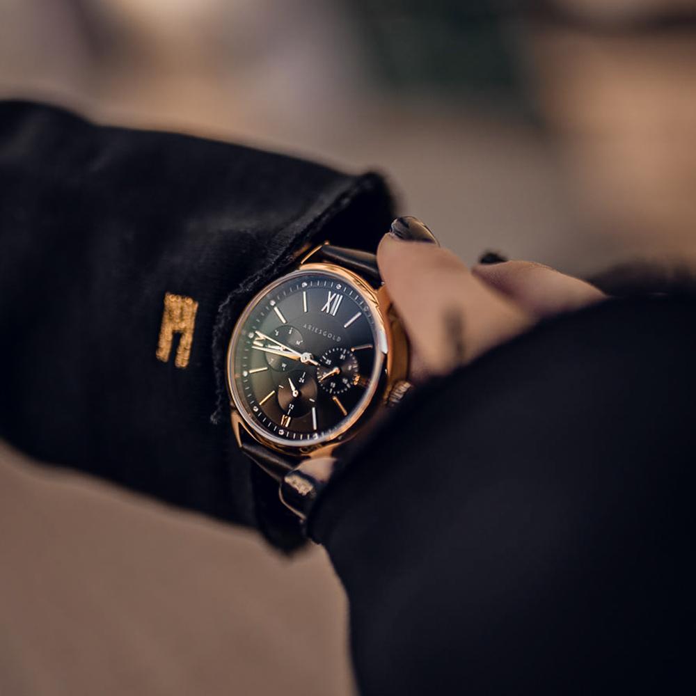 ARIES GOLD URBAN ETERNAL GOLD STAINLESS STEEL L 1028 G-BKG BLACK LEATHER STRAP WOMEN'S WATCH