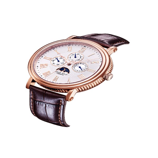 A timepiece that celebrates and embodies the intricate and artistic designs of an age-old complication: The triple calendar and sun/moon indicator. With elegant roman numerals and Breguet hands, along with detailed finished such as the coin edge centre case and hobnail guilloche patterning on the dial, the Kensington offers what is commonly known to be an inaccessible complication and design at an affordable level to the masses.