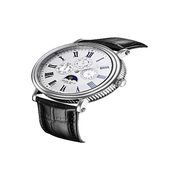 A timepiece that celebrates and embodies the intricate and artistic designs of an age-old complication: The triple calendar and sun/moon indicator. With elegant roman numerals and Breguet hands, along with detailed finished such as the coin edge centre case and hobnail guilloche patterning on the dial, the Kensington offers what is commonly known to be an inaccessible complication and design at an affordable level to the masses.