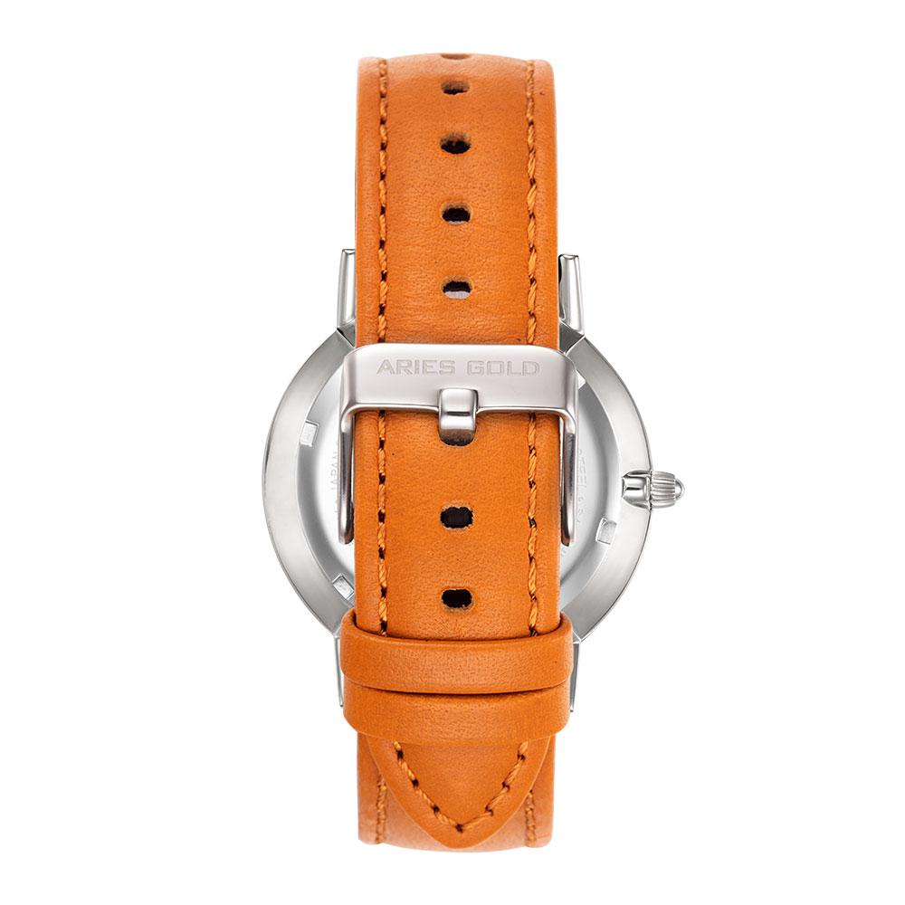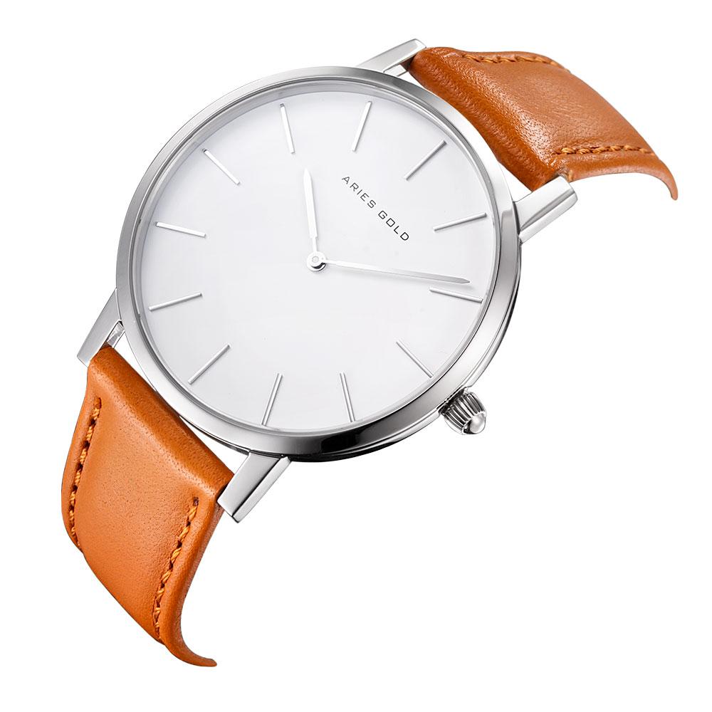 ARIES GOLD URBAN SANTOS SILVER STAINLESS STEEL G 1022 S-W BROWN LEATHER STRAP MEN'S WATCH