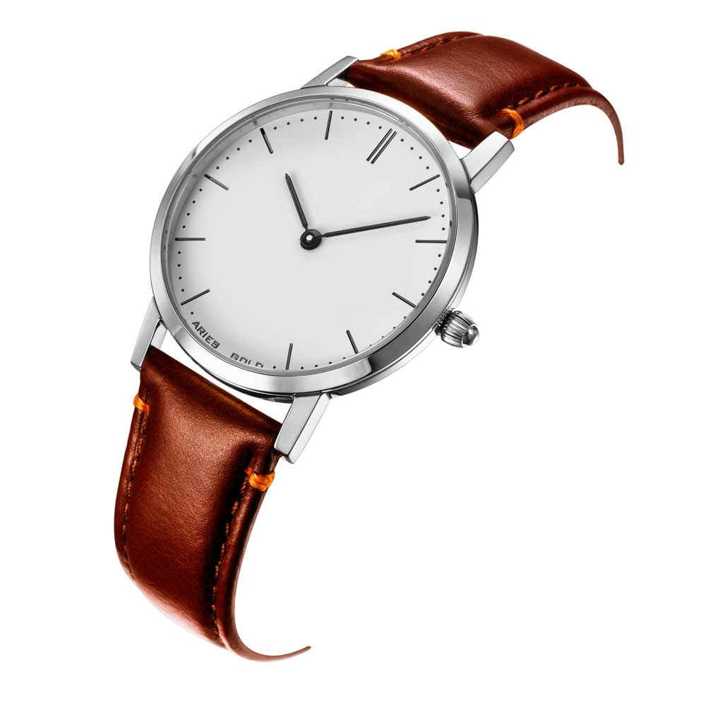 ARIES GOLD URBAN TANGO SILVER STAINLESS STEEL L 1008 S-W BROWN LEATHER STRAP WOMEN'S WATCH