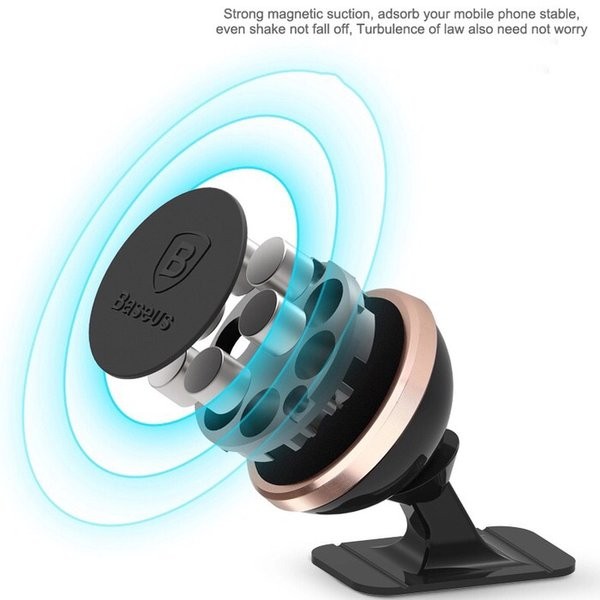 Elastic fixation design, allow it to be used in any situation, and grip firmly to the slats in your car's air vents.Strong magnetic and quality support.Portable mini magnetic holder, does not block your sight.Strong capability of anti-shaking and anti-shocking.The adhesive base allows you to stick it to whatever surface you want.360-degree rotation mount allows the phone to be adjusted to any angle.Can be used anywhere literally, such as car dashboard, office desktop, or kitchen counter.Easy installation and operation with one-hand, ensure your safe driving.Can hold your phone firmly whether it is thwart, upright or diagonal.Perfect for commuters, taxi drivers, long haul drivers, road trips and anybody who wants to use cellphone or device safely on the road.Specification General Brand Baseus Installation Stick and go Material ABS+PC+Aluminum