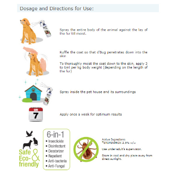 Bio-X d’Bug is made using safe and effective formulation to exterminate and repel fleas, ticks and mites. It is safe to spray directly on pets, helps to disinfect their wounds and keeps bad odour away from them.