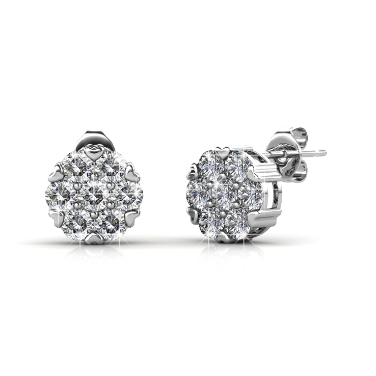 Material of Earrings: Quality Brass with 18K White Gold plating (Extra coating plating 0.05 mil thickness for long lasting shine Setting: Made with Swarovski Crystals Art.1088 XIRIUS Chaton Diameter of Crystals: PP24(3.0mm) Number of Crystals: 14 Pieces Dimension of Earrings: 7mm x 7mm x 4mm Thickness