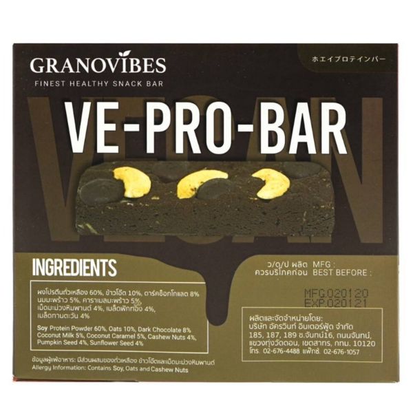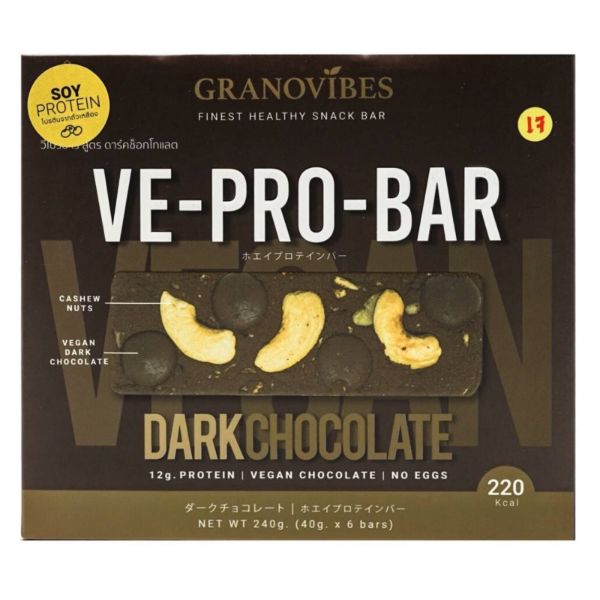 Protein bars made from clean ingredients - enjoy a healthy, delicious Granovibes Protein Bar anytime, anywhere! Granovibes Protein Bars are convenient, filling and is a nutritious snack that can be taken before your workout for extra boost of energy or after a workout for muscle building and workout recovery! Dark Chocolate combined with Cashew nuts for a high-protein, guilt-free indulgence. This protein bar is made up mainly of protein powder, oats, nuts and seeds and dark chocolate that creates the taste of a decadent brownie that is sure to please any chocolate lover's craving, with an added bonus of 12 grams of protein.