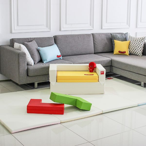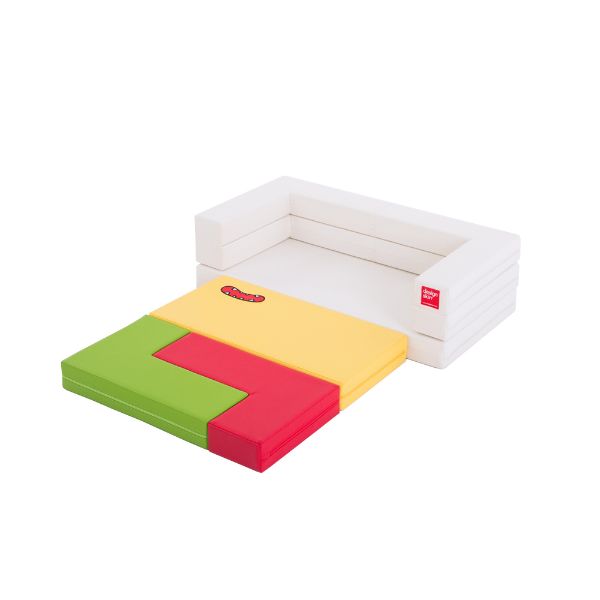 No limit playground: ball pool, bench, table and chair, theater stage, extra bed, mat, small hut... These five elements combine in the frame just like a real puzzle, but in much larger size. Your kids will be blown away.