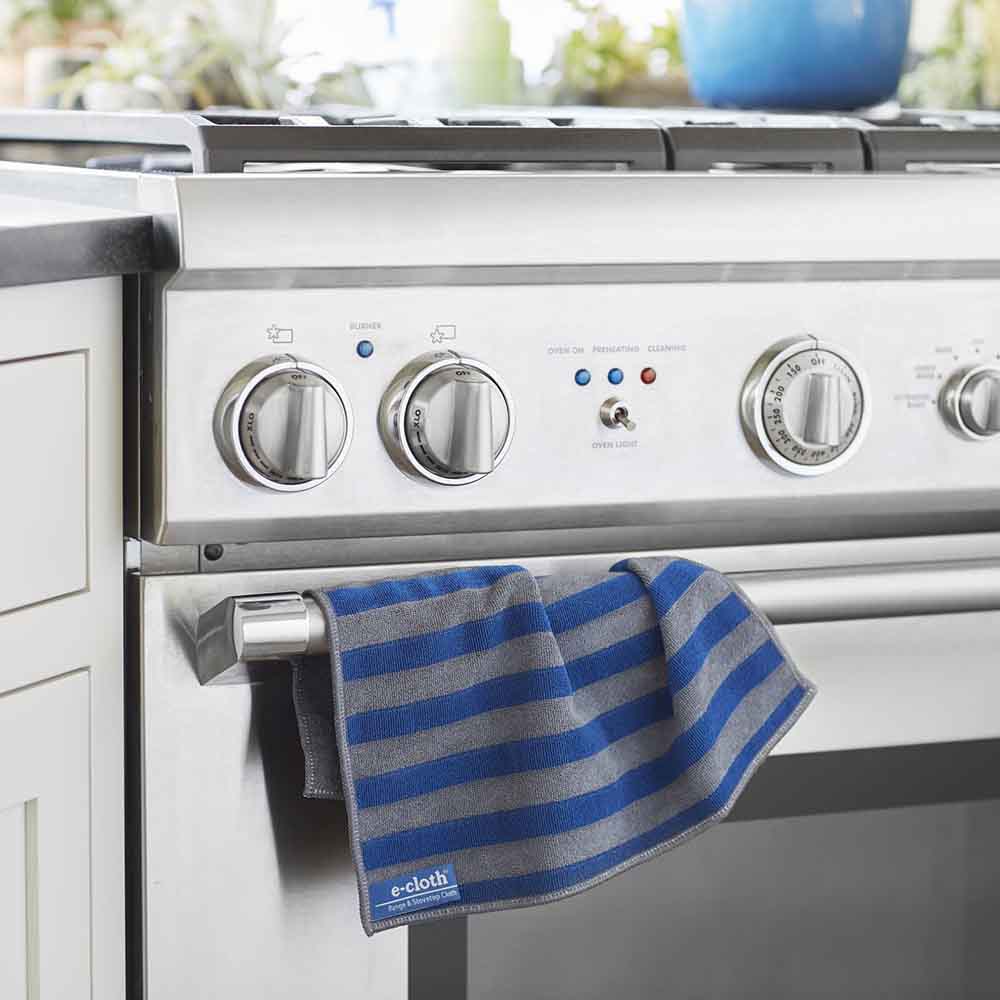 Use the Range Stovetop Pack to clean and shine your stovetop, range, and oven. The dual-sided Range Stovetop Cloth is a cook’s best kept secret: on one side, non-scratch, scrubbing stripes cut through persistent, stuck-on residue, while the soft, absorbent side wipes away grease and crumbs. Dry the outer surface of your appliance with the Glass Polishing Cloth for a finished, streak-free shine. Includes 2 cloths: (1) Range Stovetop Cloth, (1) Glass Polishing Cloth