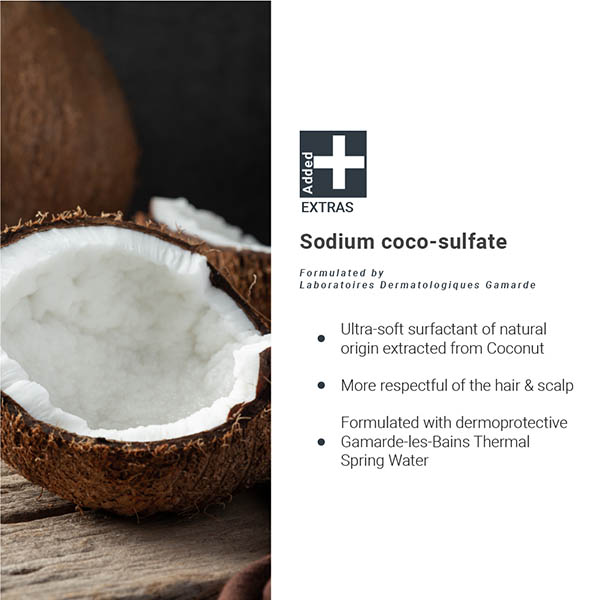 Formulated with a ultra-soft surfactant of natural origin derived from coconut. Respectful of the hair and scalp.