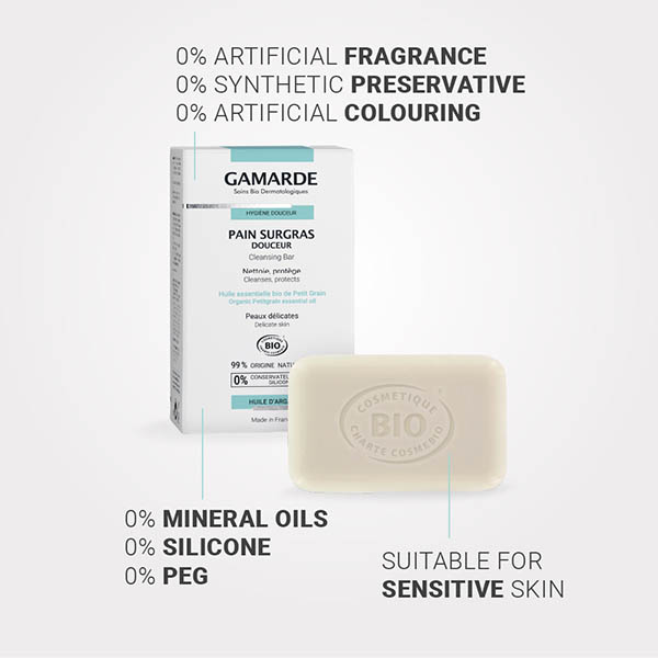 Rich in organic Argan oil, it cleanses the skin thanks to its fine and unctuous foam. Its superfatting active ingredients restore softness, vitality and suppleness to dry and delicate skin. Contains Shea Butter with nourishing properties.