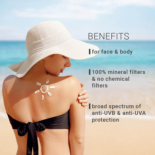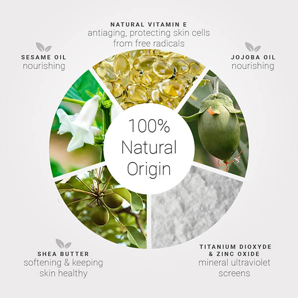 100% mineral filters. Free of chemical filters. Protects the skin from all types of sunlight. Its invisible texture does not leave any white marks.