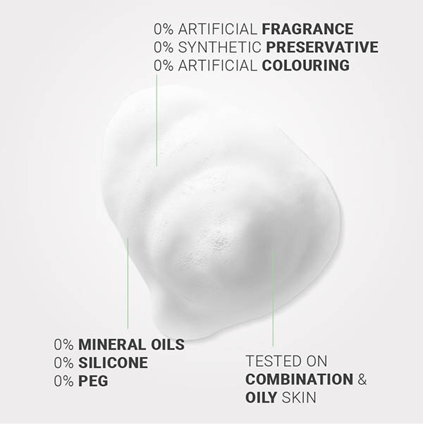 This foam gently cleanses, eliminates excess sebum and impurities. Ideal for young oily, acne-prone skin. Regulates excess sebum and purifies the epidermis. Young oily acne-prone skin. Vegan Formulation