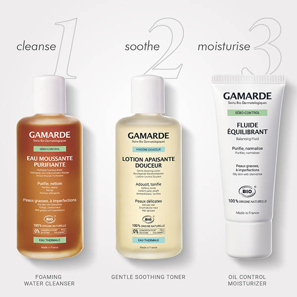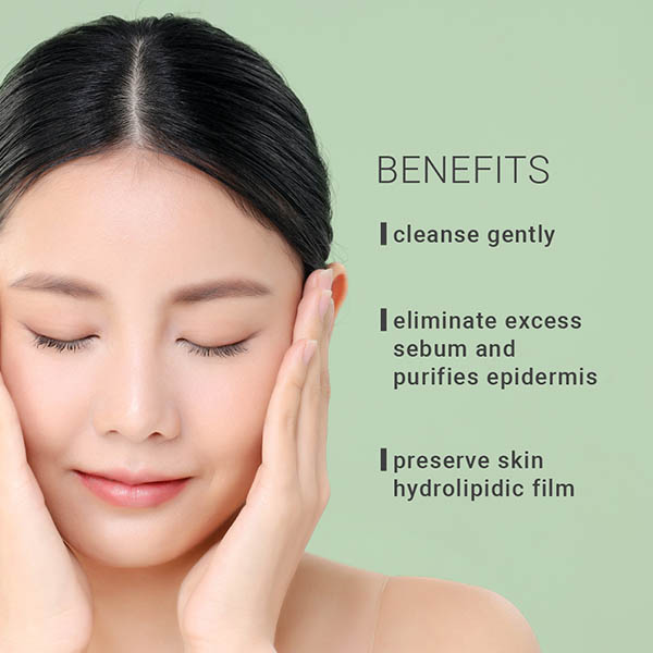 It gently cleanses, eliminates excess sebum and purifies the epidermis while respecting the hydrolipidic film of the skin.