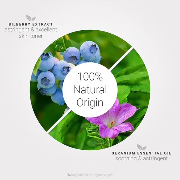 Gamarde aqua (Gamarde Water), aqua (Water), Vaccinium myrtillus fruit extract*, cocamidopropyl betaine, Rubia tinctorum root extract, Pelargonium graveolens flower oil*, citronellol°, geraniol°