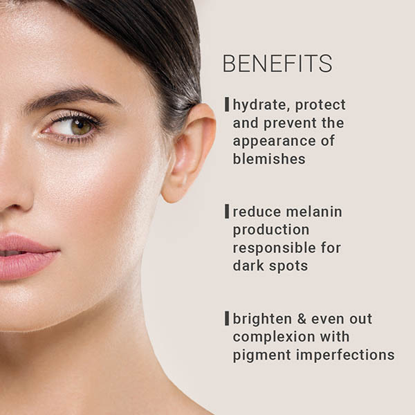 Ideal for dull skin and/or skin with brown spots (pigment imperfections). It reduces the production of melanin responsible for dark spots. The complexion is unified and its radiance revived.
