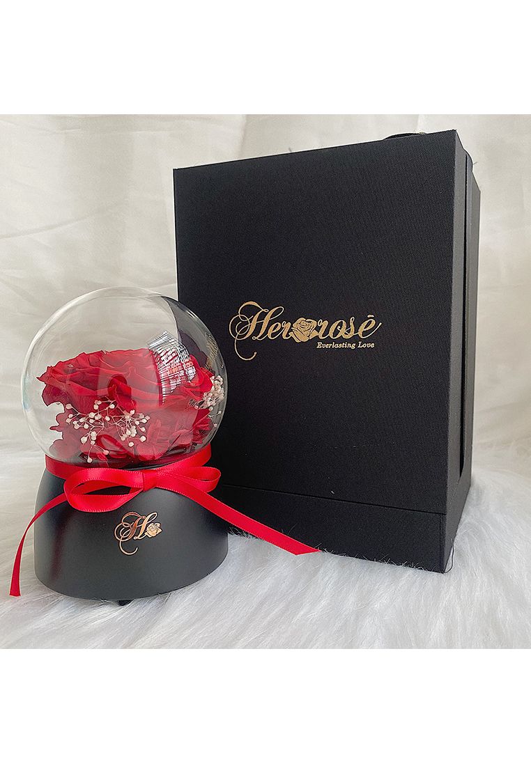 Her Rose Only Love Music Globe (Red Rose + Black)