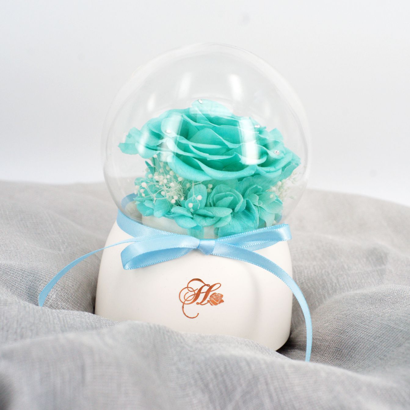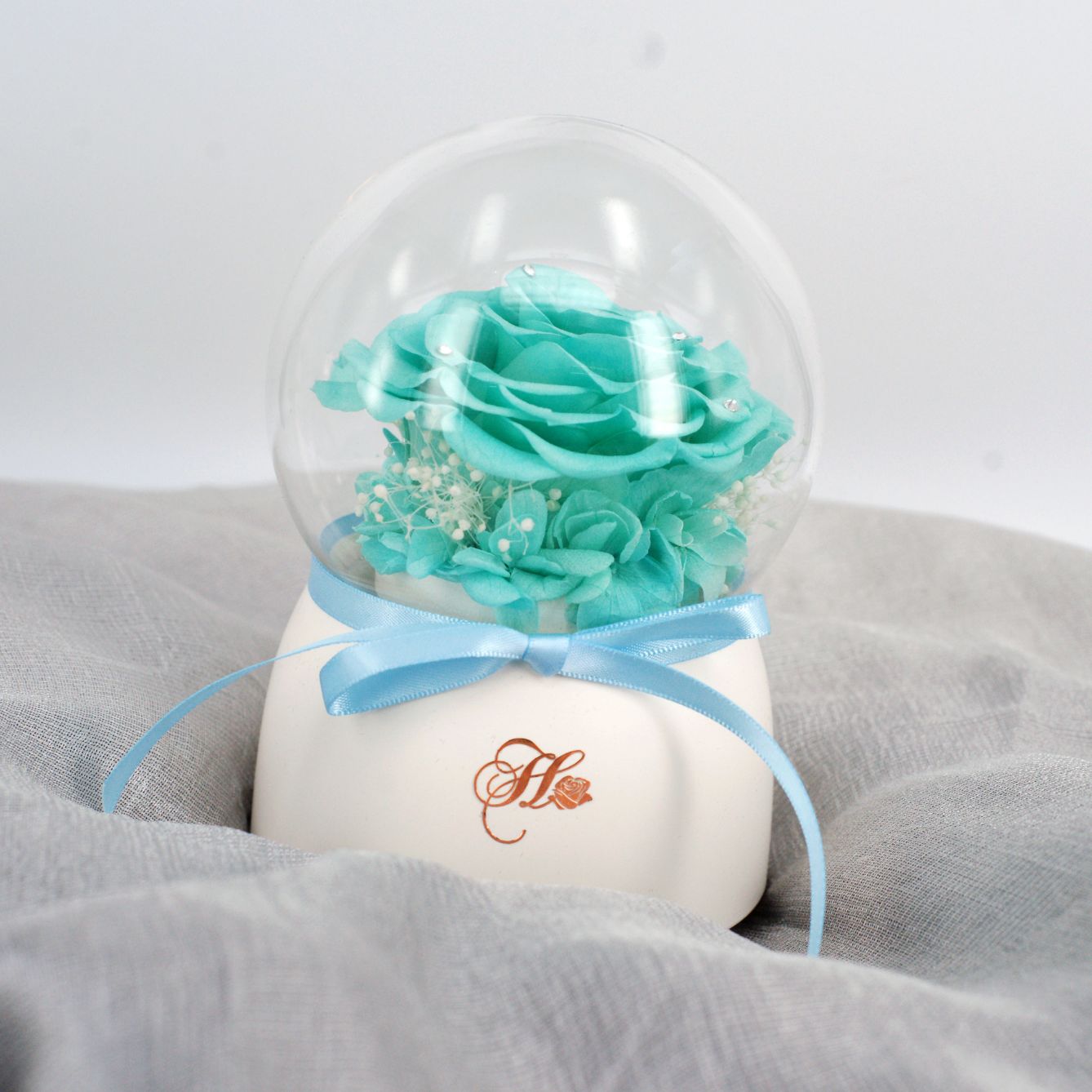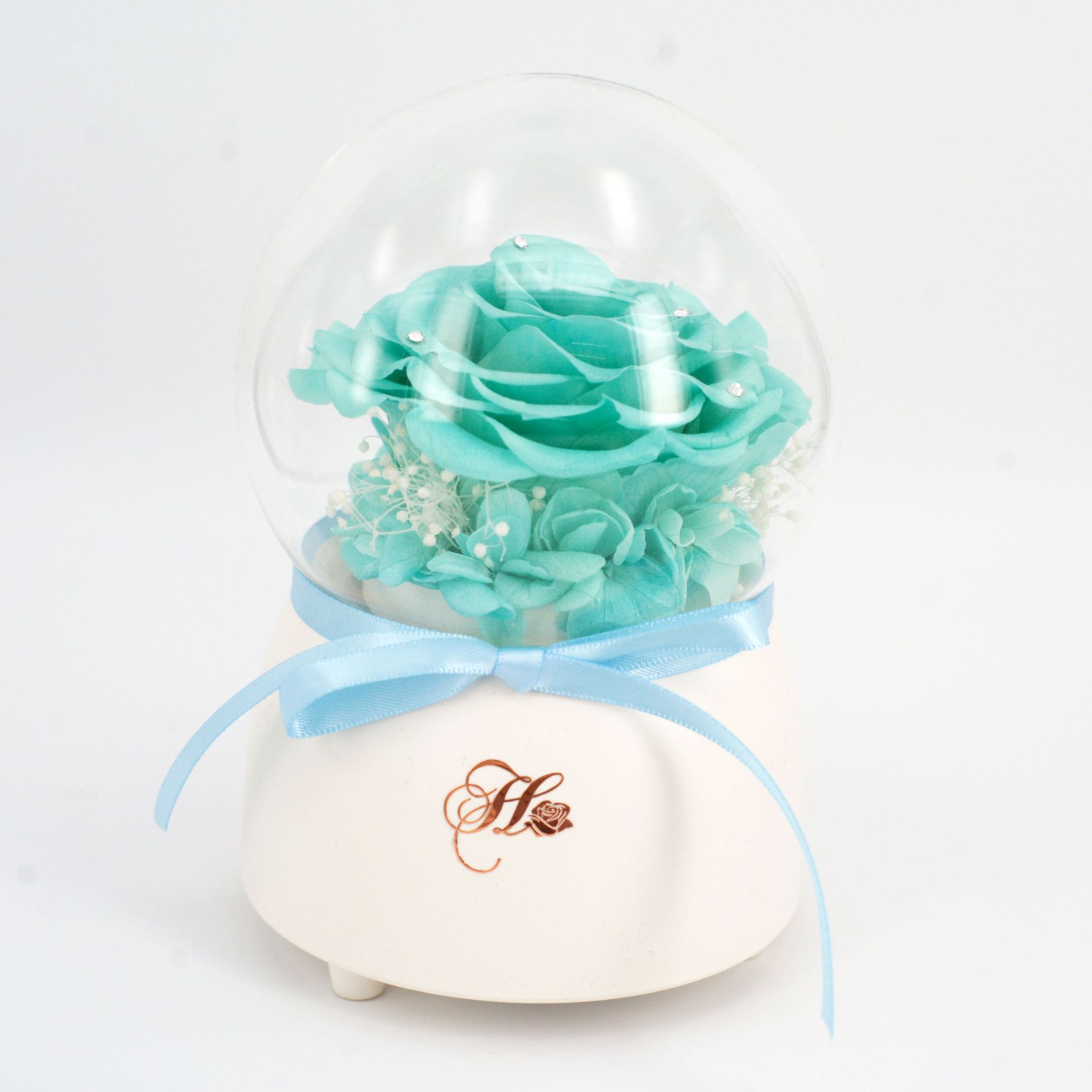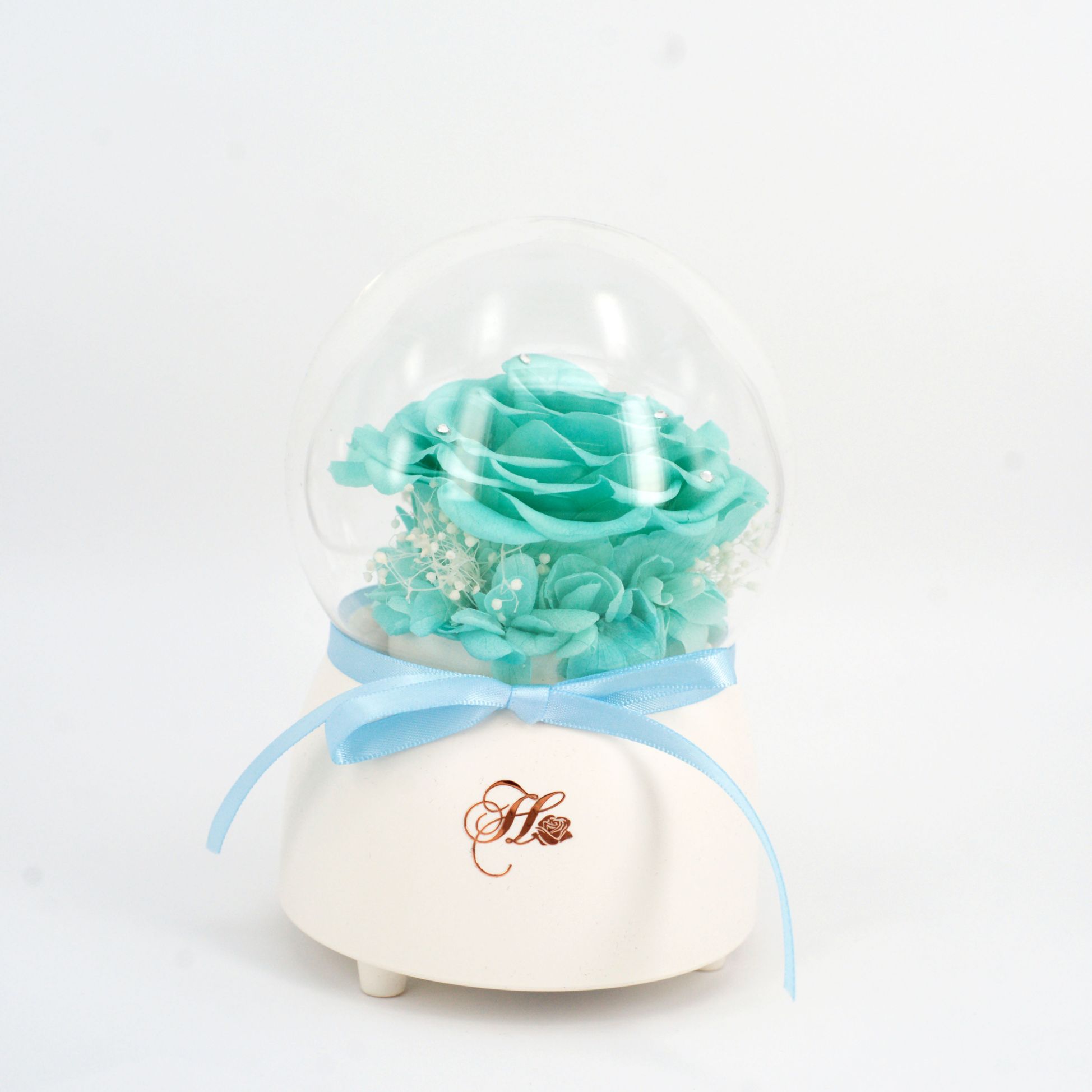 Her Rose Only Love Music Globe (Tiffany Blue + White)