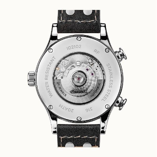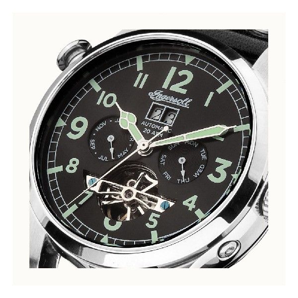 The black dial of the Armstrong I02102 combines modern design with classic watch making. The hands are coated in luminova for a glow in the dark effect.