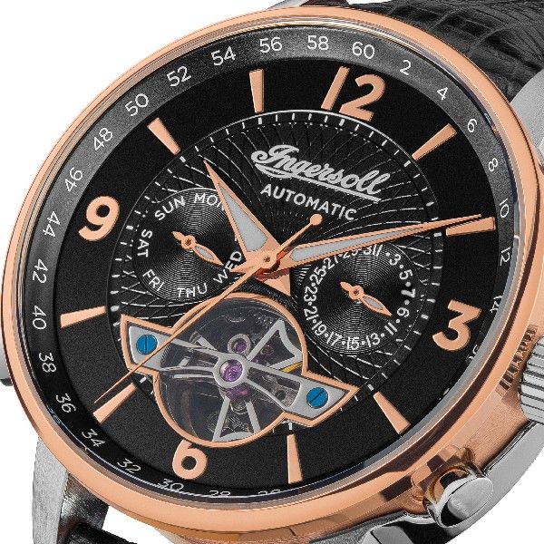 The Herald I00702B watch is an exquisite time piece with a captivating skeletonized movement, finished to the highest standard by stainless steel rose gold casing.