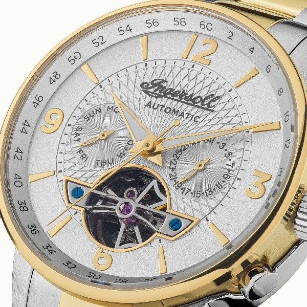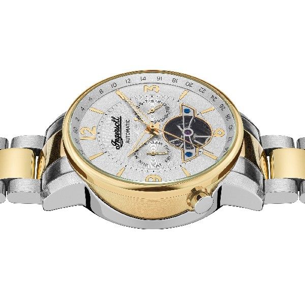 Ingersoll The Grafton I00705 is a functional and special Gents watch from SS20 collection. Case is made out of Two-tone steel/gold plate while the dial color is White. In regards to the water resistance, the watch has got a resistance up to 50 meters. It means it can be submerged in water for periods, so can be used for swimming and fishing. It is not recommended for high impact water sports. We ship it with an original box and a guarantee from the manufacturer.