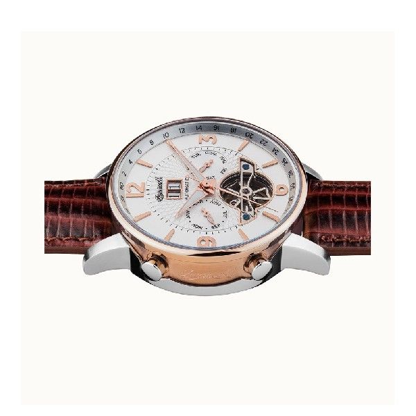 This watch gains character and personality from the distinctive balance wheel perfectly situated above the 6 o'clock mark. An automatic movement provides the power.