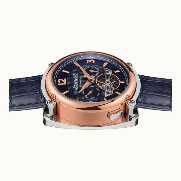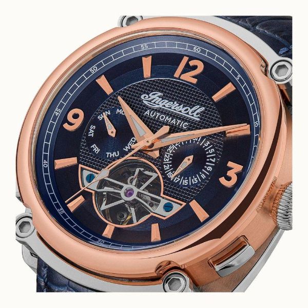 The Herald I01101B watch is an exquisite time piece with a captivating skeletonized movement, finished to the highest standard by stainless steel rose gold casing.