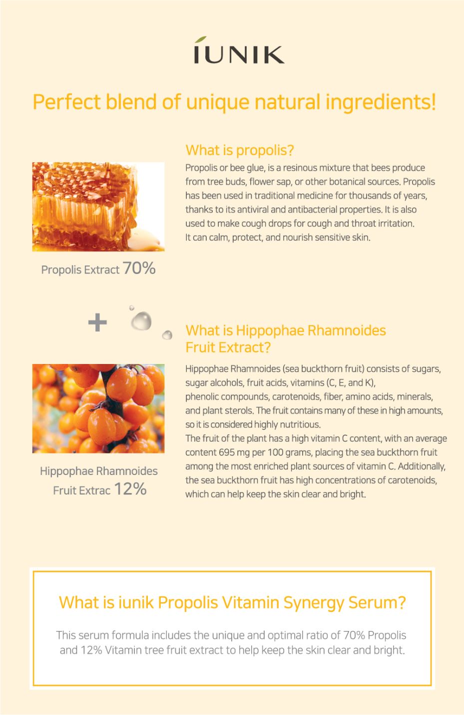 A feather light, completely free from water, IUNIK Propolis Vitamin Synergy Serum delicately breaks down on your skin surface without any stickiness and heaviness. It sparks new vitality and sheen on your skin for a perfect smooth finish, thanks to its exceptionally rewarding ingredients, extracted with immense care and hard work from the earth, just for you.