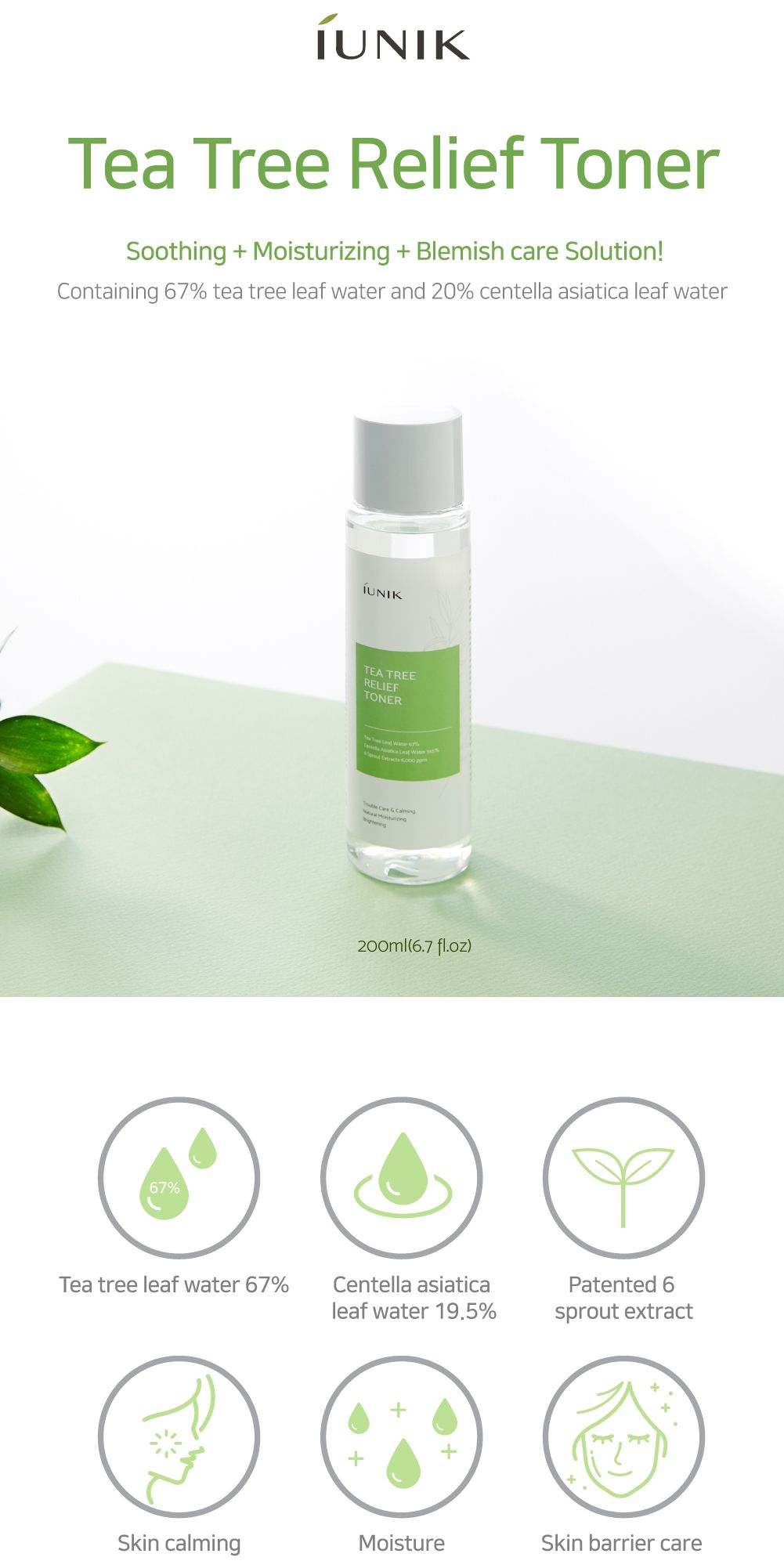 iUnik Tea Tree Relief Toner is a single remedy for hydration, relief from irritation for sensitive skin, nutrition and prevention of pigmentation. Not many toners can offer all these at one go. Moreover, it is rare to find a product like iUnik Tea Tree Relief Toner that is safe, free from chemicals and completely natural. It is truly a gift of nature.