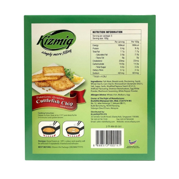 The Kizmiq Fish or Cuttlefishh Chip consists of about 10 pcs and a net weight of 500g per packet. We pride ourselves for offering high-quality and Halal-certified foods.