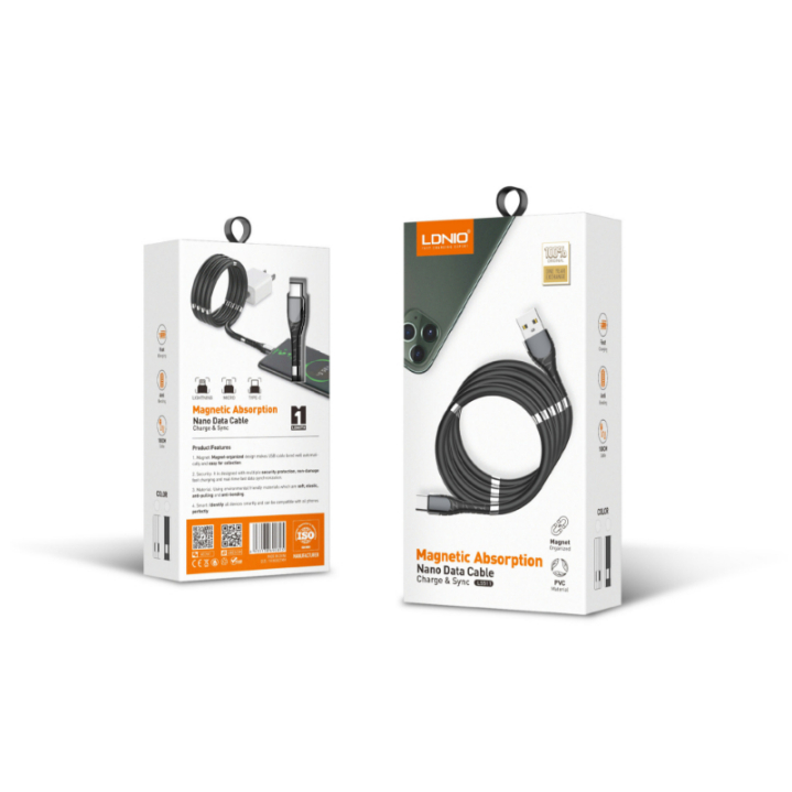 LDNIO Magnetic Absorption Nano Data Cable (IOS Lightning, Black)