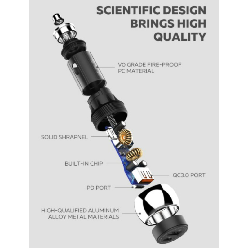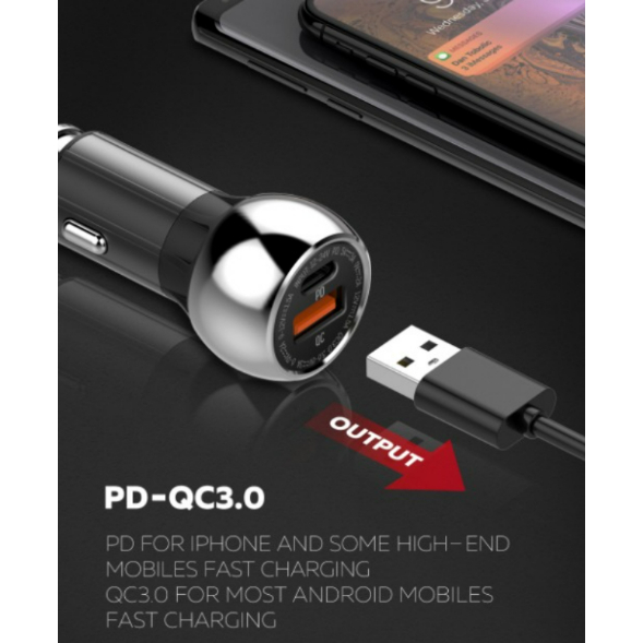 LDNIO PD+QC3.0 Fast Car Charger (Includes IOS Lightning cable)