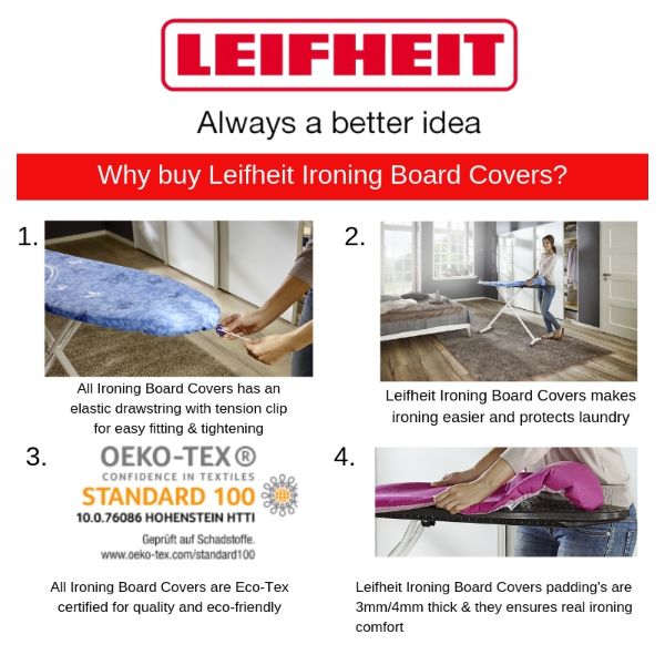 The cover is particularly suitable for steam irons. The materials of the ironing board cover are of course free of harmful substances and Öko-Tex certified.