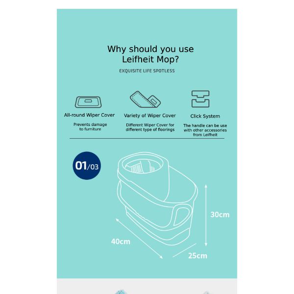● Wipe cover with floor-friendly loop structure made of polyester for sensitive floors such as parquet, laminate and real wood