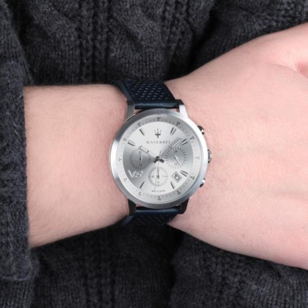 Tell the time with acute precision when you strap this Maserati creation on your wrist. Designed with a polished bezel with a sleek leather strap, this time-teller is laced with timeless appeal. Practical in function and opulent in design, this watch makes an excellent addition to your watches collection.