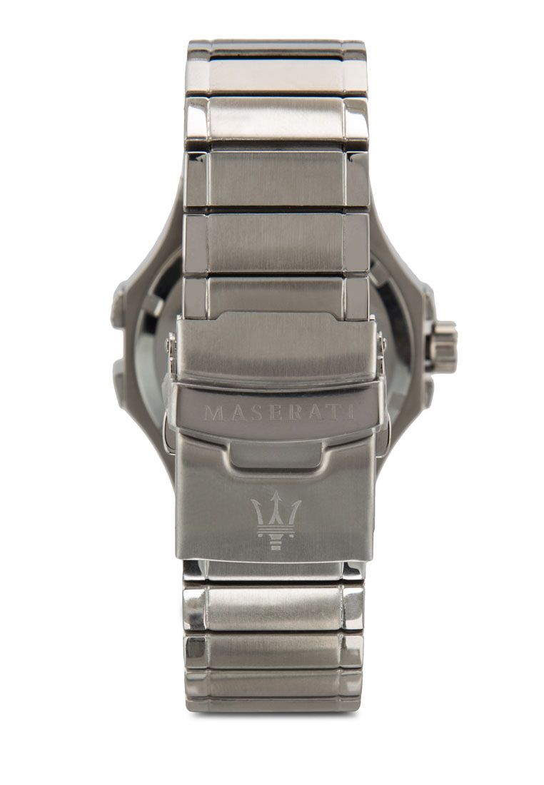 Maserati timepieces are definitely watches to keep your eyes on and this slick accessory is no exception Sporting a classic-style silver stainless steel case and silver stainless steel band this very eye-catching and modern watch is the perfect accessory option for every day wear Additional features include luminous hands Arabic numeral display date display screw-down crown water resistant up to 100 meters and measures seconds