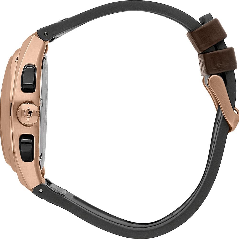 The new Maserati Circuito collection plays with clean and well-defined geometry. This watch is characterized by a 42 mm steel case and bezel with exposed blue screws. The open date perfectly accompanies the silver coloured dial with blue details, while the strap reflects the steel of the other elements. Screw-down crown and back, Water Resistant 10 ATM.