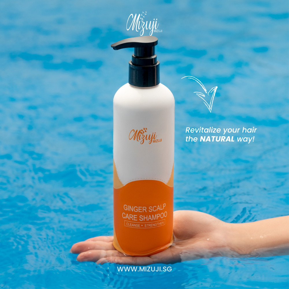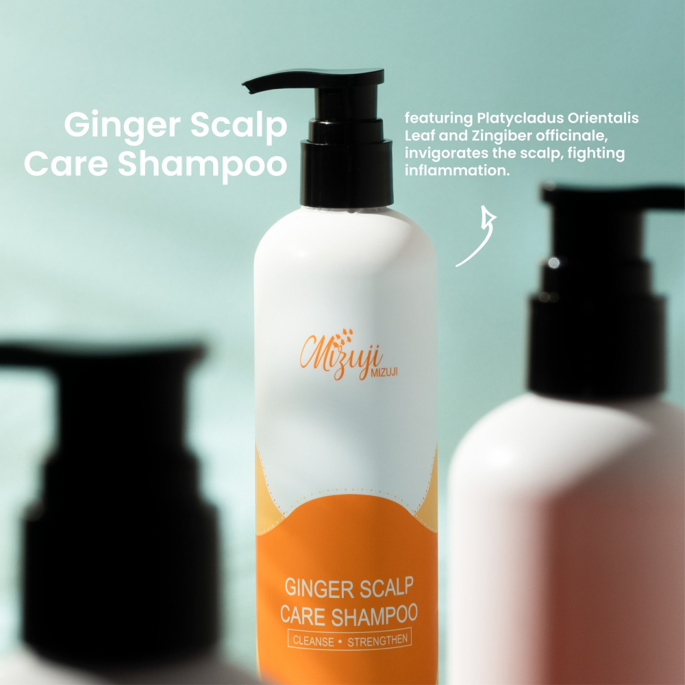 Mizuji Ginger Scalp Care Shampoo is specially formulated to address scalp-related issues such as scalp sensitivity, itchiness, dandruff, hair loss and oily roots. The products were designed to treat these concerns to reveal a well-balanced scalp. Enriched with natural ginger extract, Platycladus orientalis leaf extract, and Amodimethicone, this shampoo delivers a soothing and invigorating cleanse. Ginger extract's anti-inflammatory properties calm scalp irritations and promote healthy blood circulation, while Platycladus orientalis leaf extract provides antioxidants to nourish and protect the scalp. Amodimethicone forms a protective barrier, shielding the hair from environmental stressors and preventing damage.